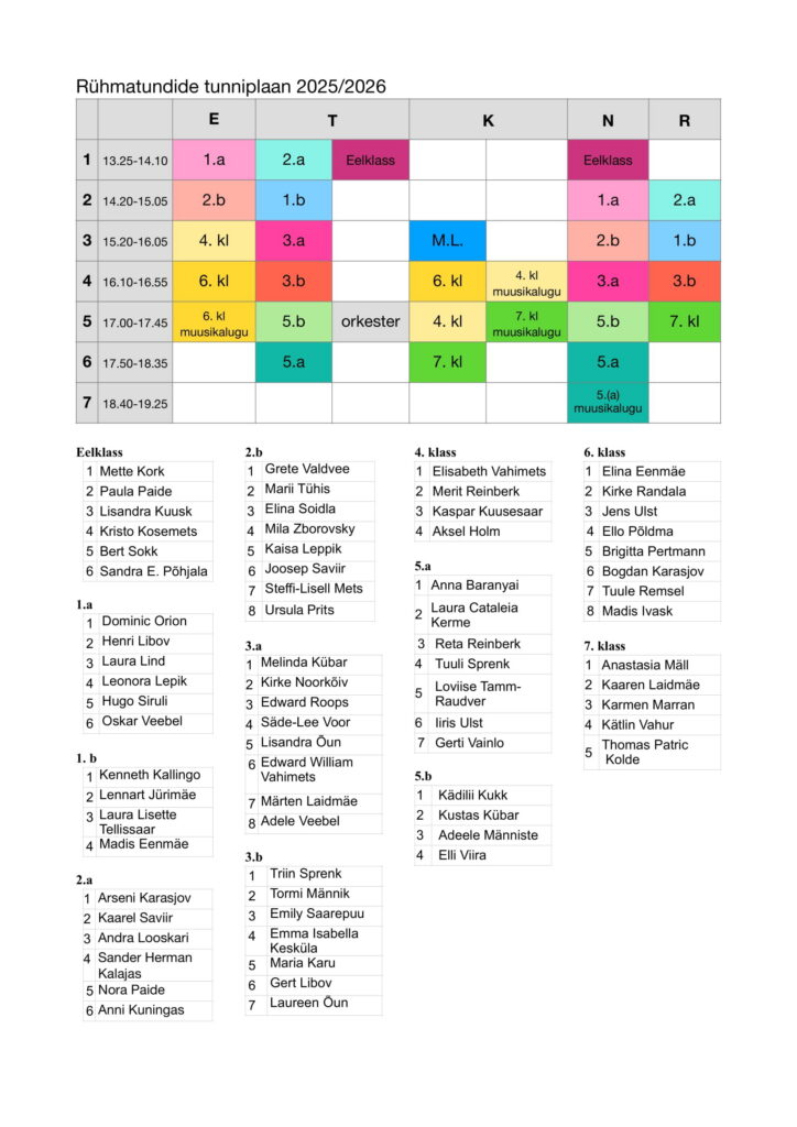 Rühmatundide tunniplaan 2025/2026 õppeaastaks